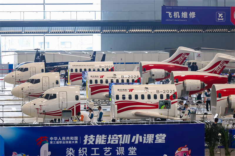 2025 年,捷安高科瞄準(zhǔn)航空維修職業(yè)教育與國(guó)際賽事需求,在無(wú)成熟案例、無(wú)完整技術(shù)資料、無(wú)相關(guān)設(shè)計(jì)經(jīng)驗(yàn)的前提下,成功研發(fā) “飛機(jī)維修整機(jī)綜合實(shí)訓(xùn)平臺(tái)”,實(shí)現(xiàn)航空實(shí)訓(xùn)裝備領(lǐng)域的關(guān)鍵突破,已成功應(yīng)用于第三屆全國(guó)技能大賽飛機(jī)維修賽項(xiàng),創(chuàng)新地原本拆分的賽項(xiàng)模塊整合集成于一整架仿真機(jī)身上操作。